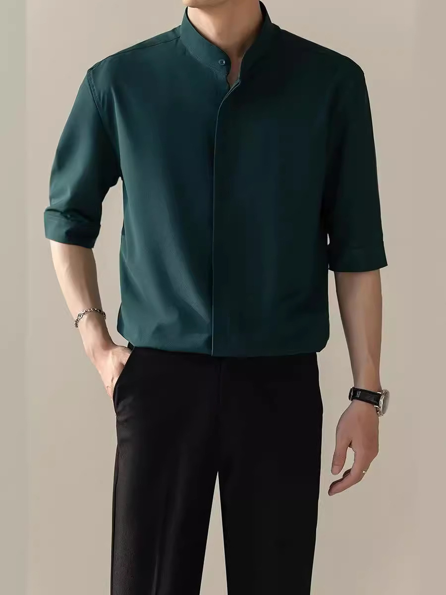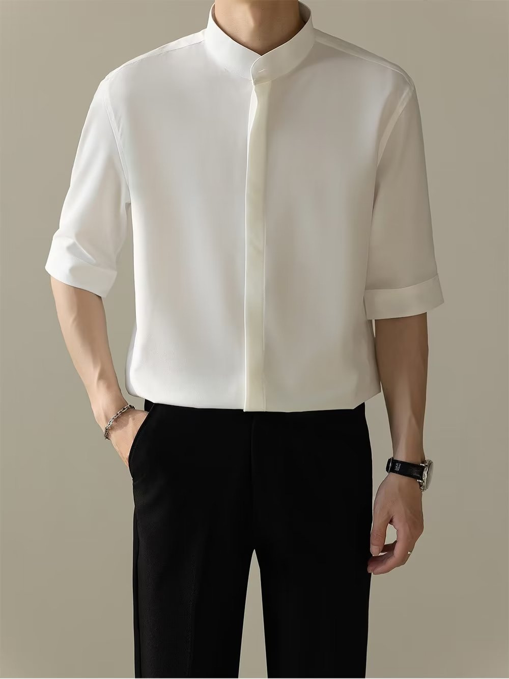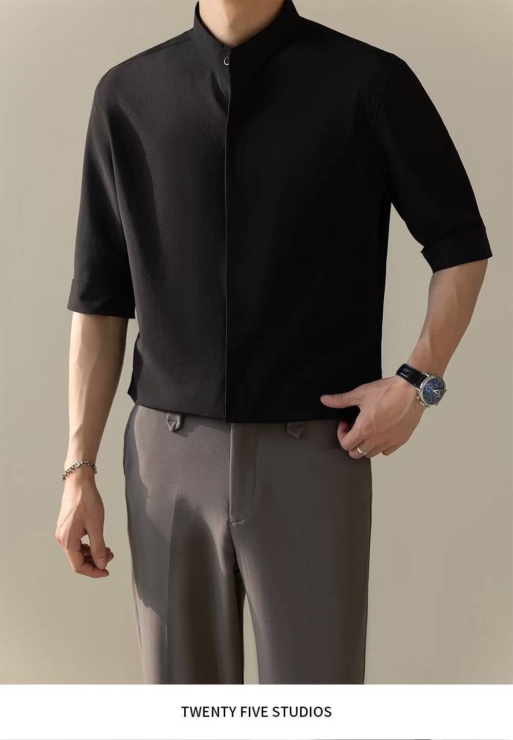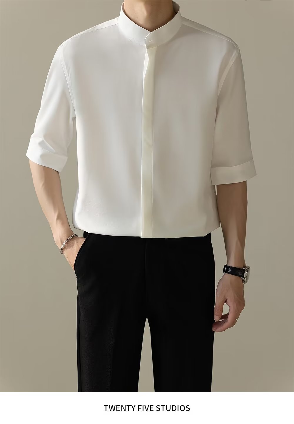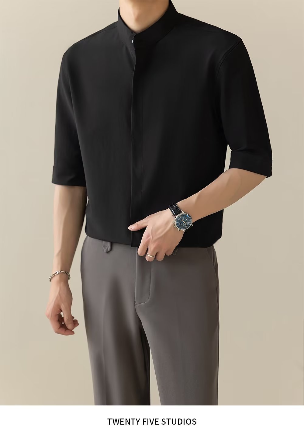 Men’s Thin Stand Collar Short Sleeve Shirt – Casual Lightweight Half Sleeve Summer Top